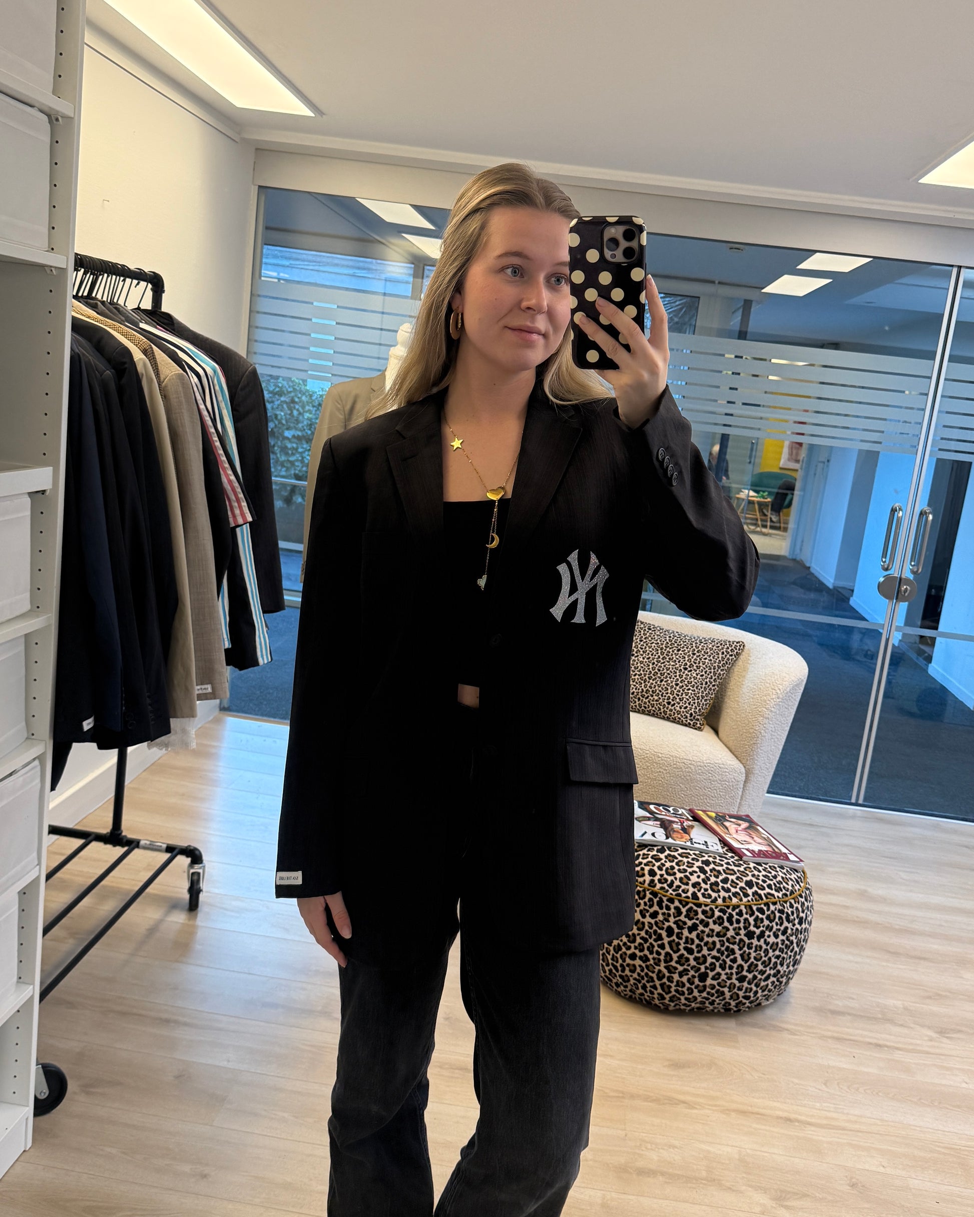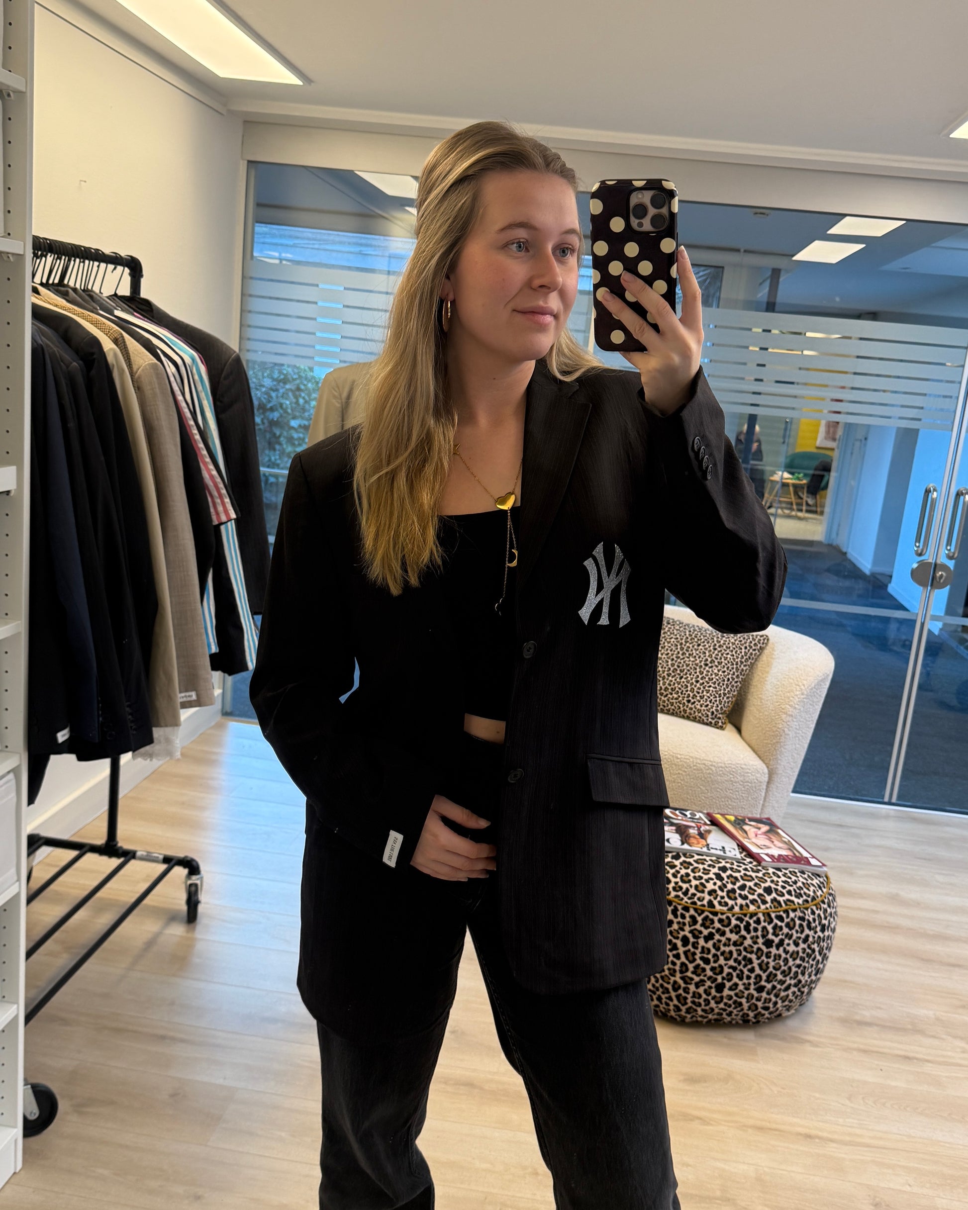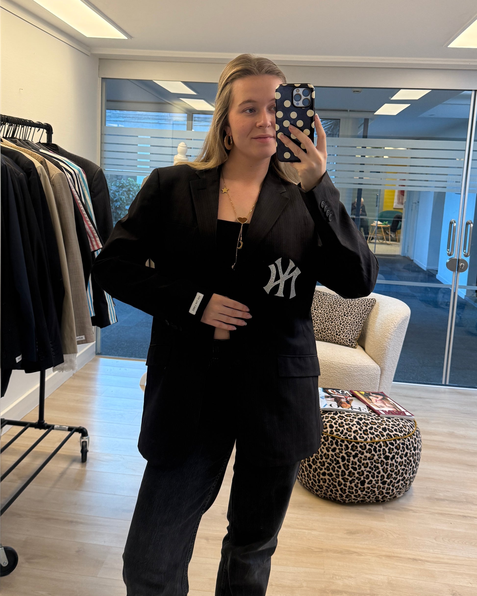 De blazers kunnen van maat XS t/m L. Heb je een maat L zal de blazer iets kleiner vallen dan het model en heb je een maat XS juist iets groter dan het model.