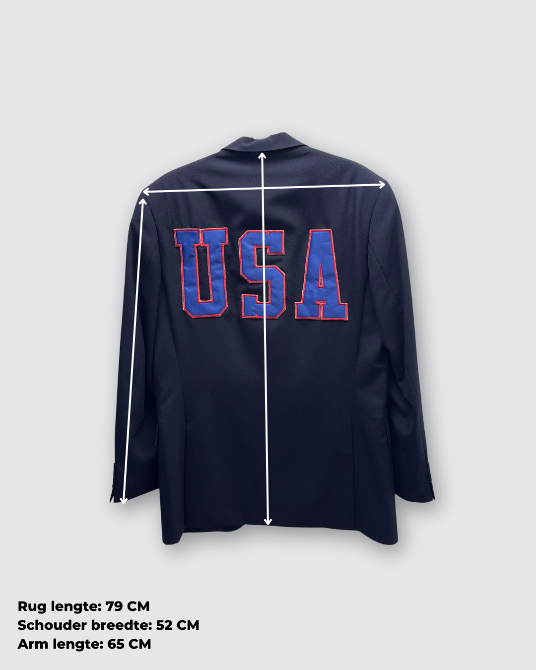 Deze blazer is een herenmaat: 52. Dit staat gelijk aan een M met een oversized fit. Wil je dat de blazer aangesloten valt neem dan een maat kleiner dan je eigen maat of als je wil dat de blazer echt mega oversized valt neem dan een maat groter dan je eigen maat! Kijk voor afmetingen tussen de foto's