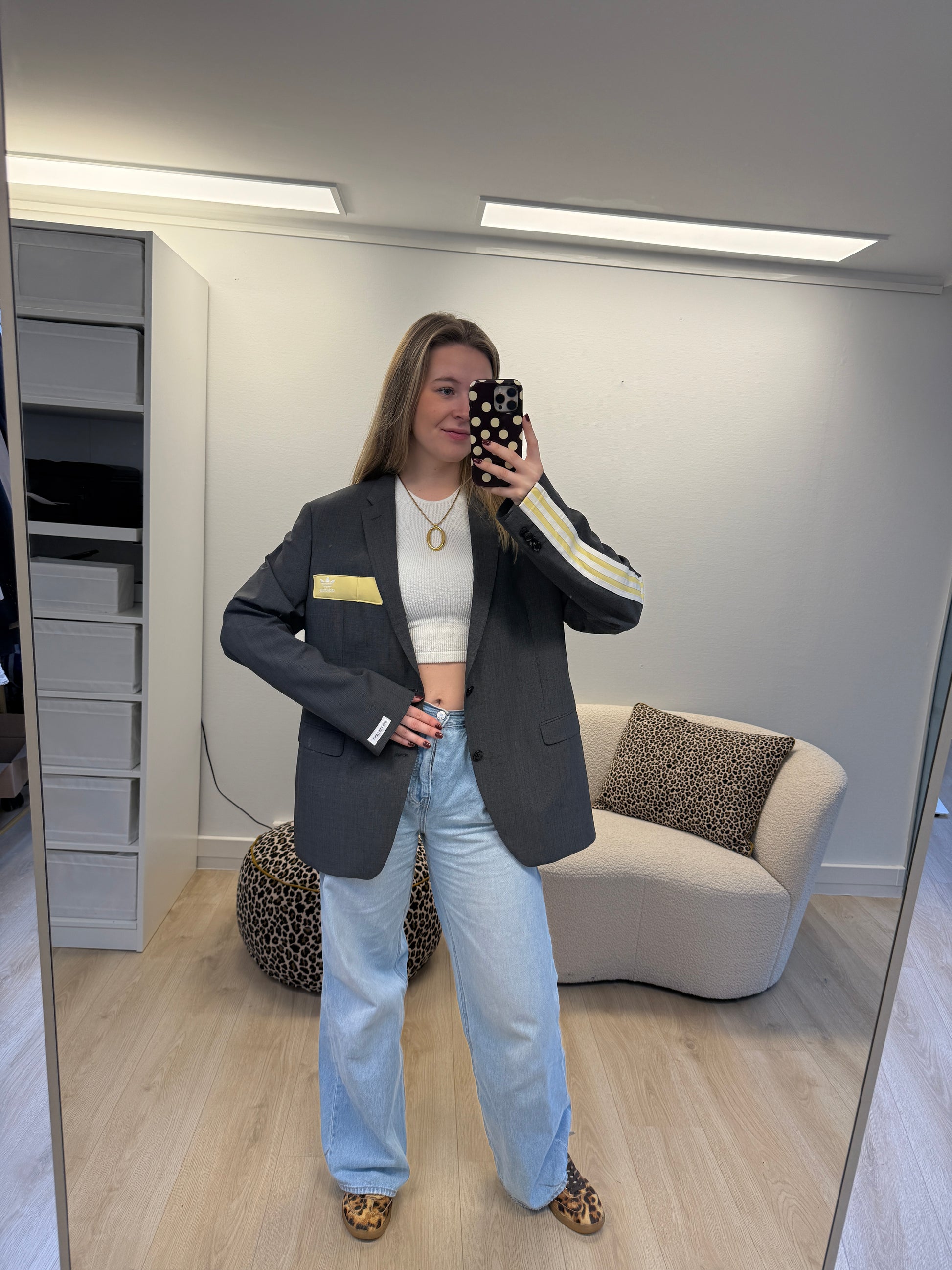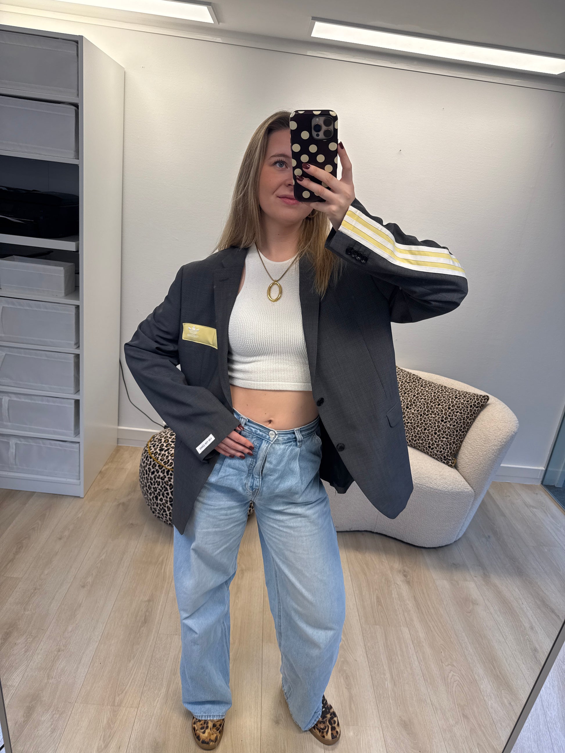 De blazers kunnen van maat XS t/m L. Heb je een maat L zal de blazer iets kleiner vallen dan het model en heb je een maat XS juist iets groter dan het model.