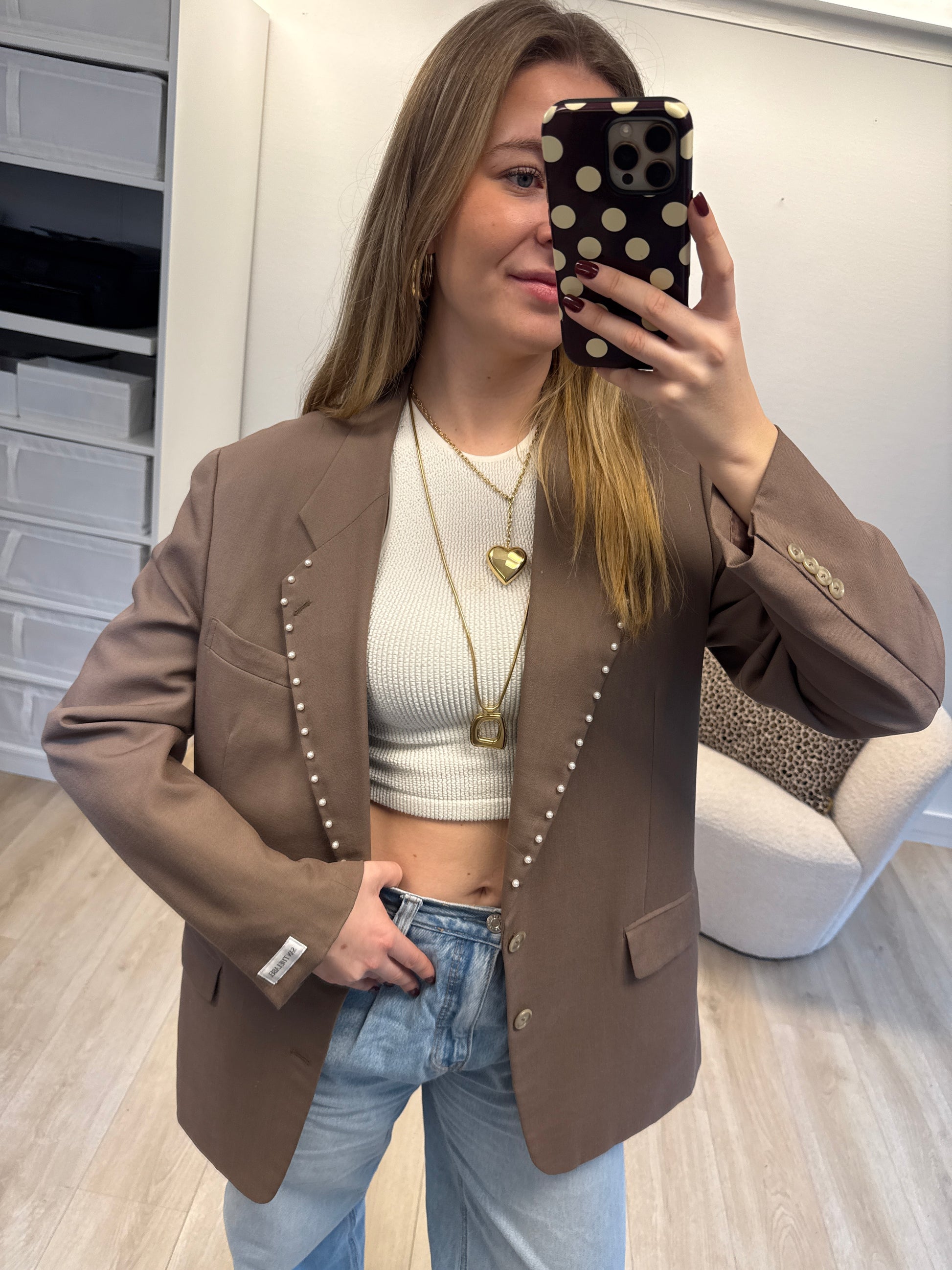 De blazers kunnen van maat XS t/m L. Heb je een maat L zal de blazer iets kleiner vallen dan het model en heb je een maat XS juist iets groter dan het model.