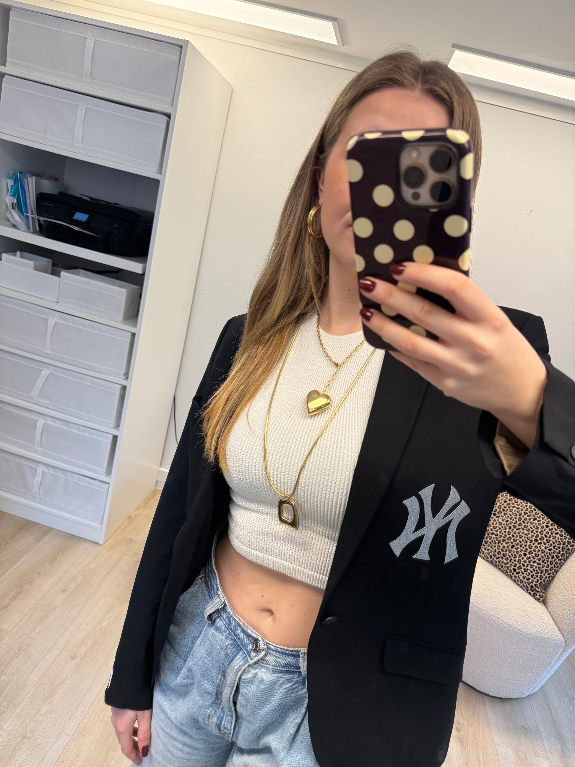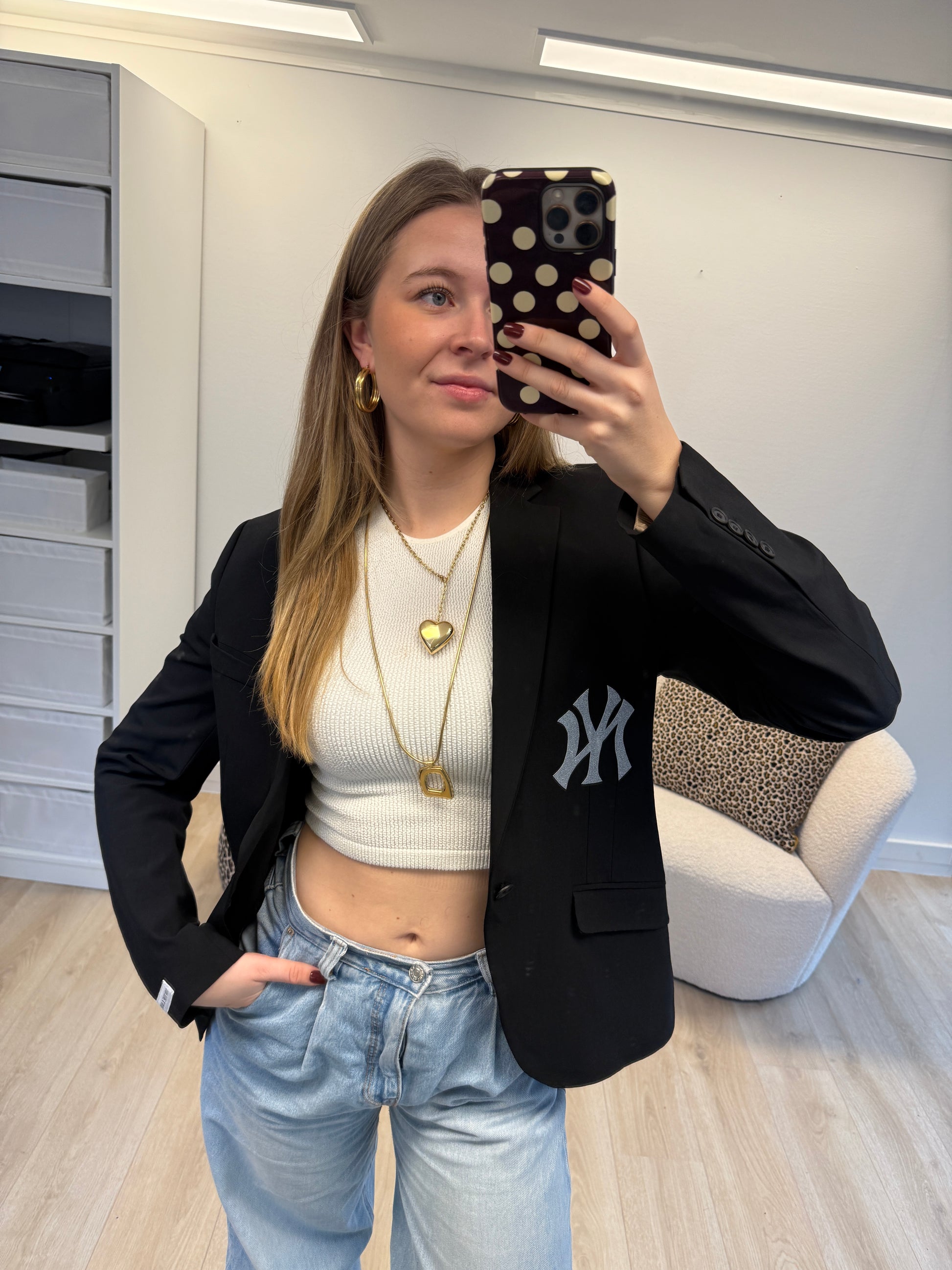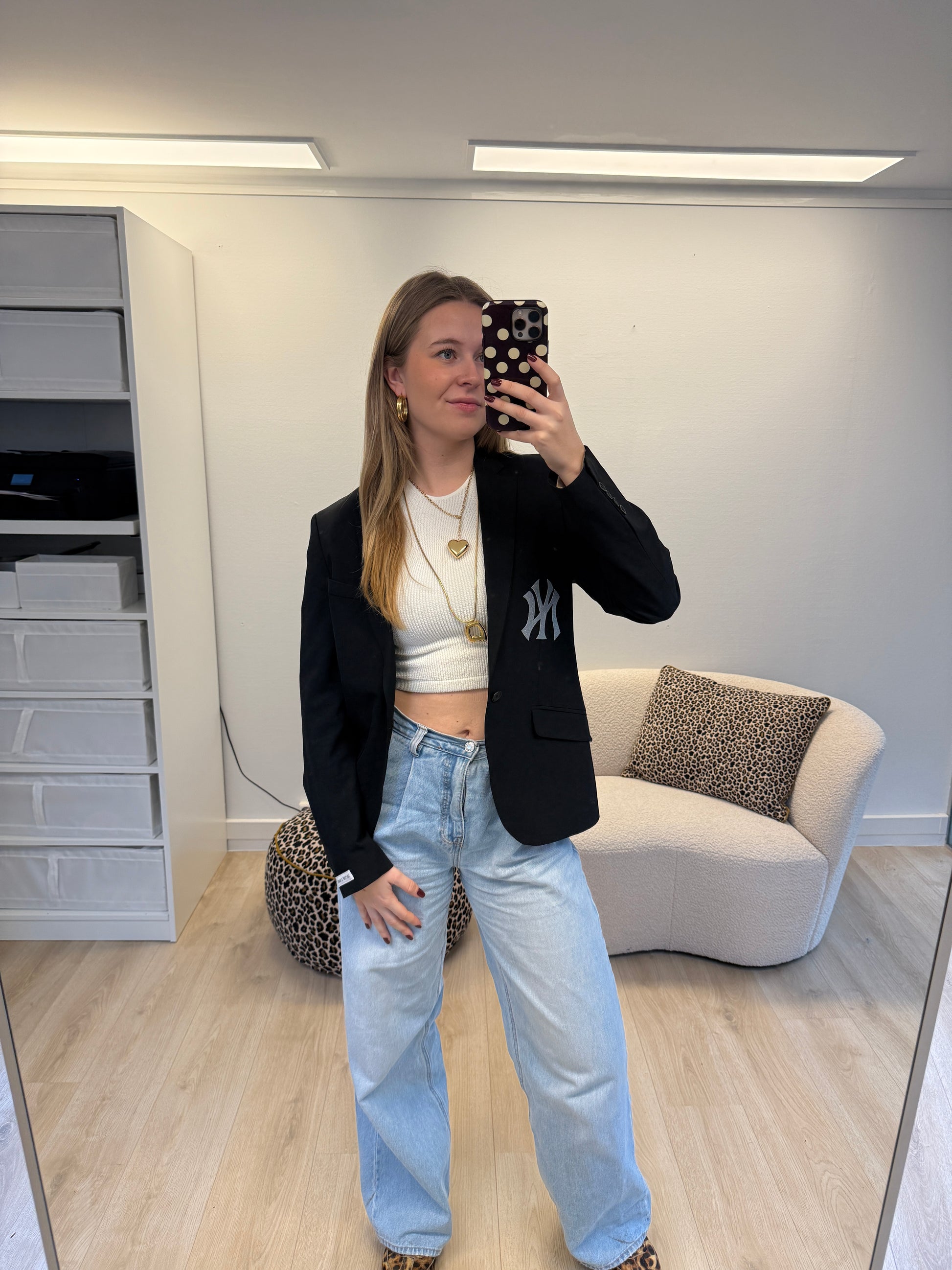 De blazers kunnen van maat XS t/m L. Heb je een maat L zal de blazer iets kleiner vallen dan het model en heb je een maat XS juist iets groter dan het model.