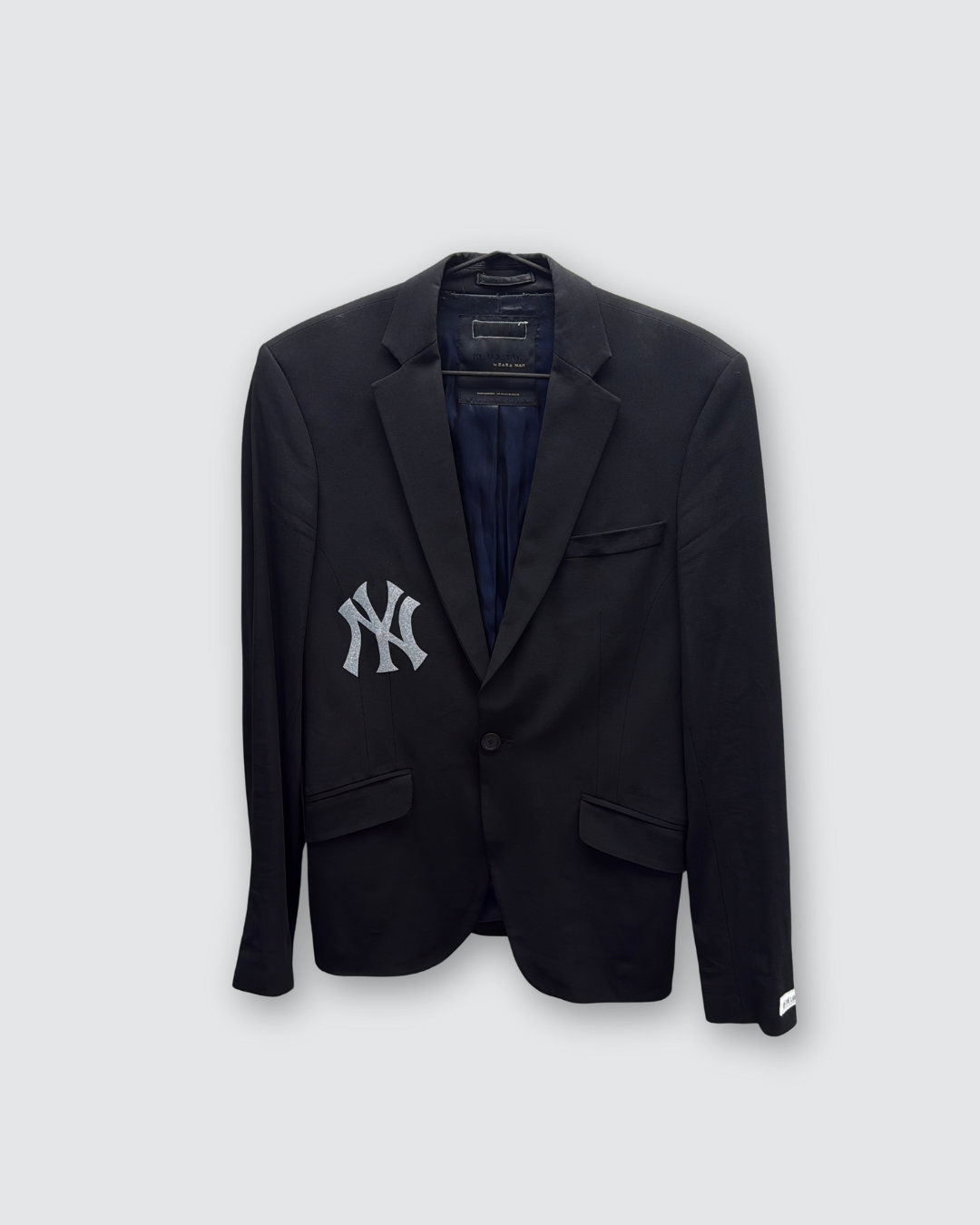 Deze blazer is een herenmaat: 48. Dit staat gelijk aan een XS met een oversized fit. Wil je dat de blazer aangesloten valt neem dan een maat kleiner dan je eigen maat of als je wil dat de blazer echt mega oversized valt neem dan een maat groter dan je eigen maat! Kijk voor afmetingen tussen de foto's