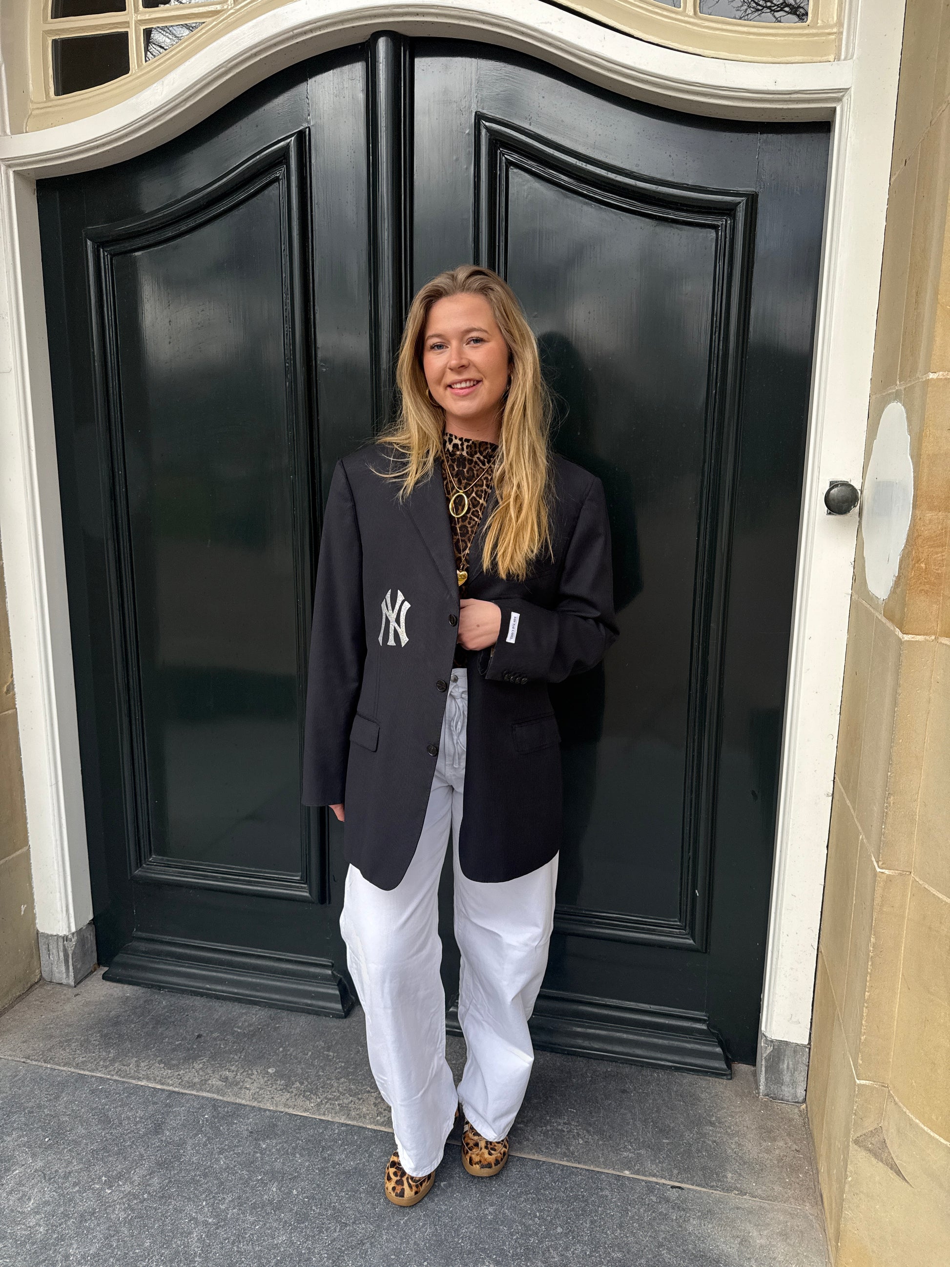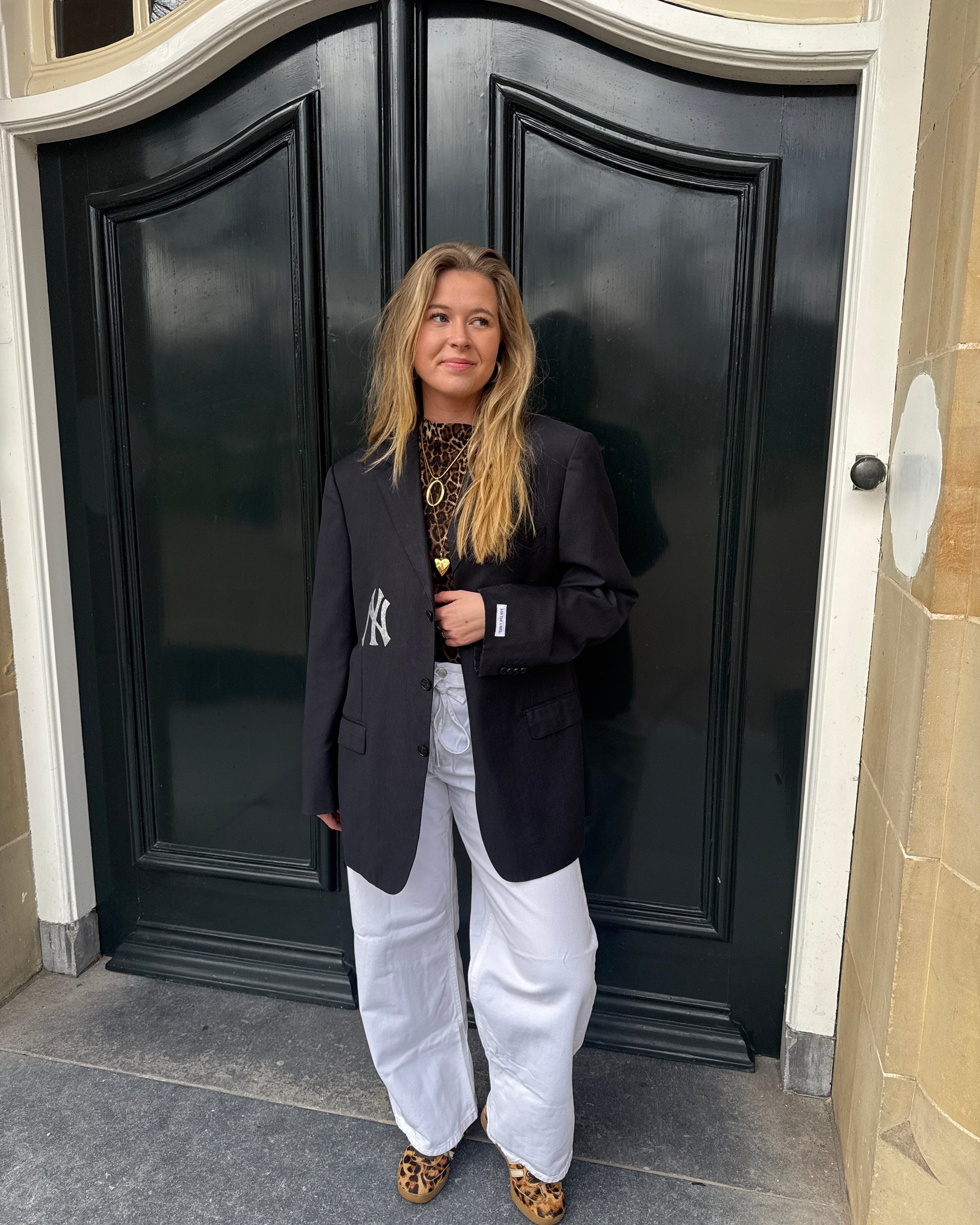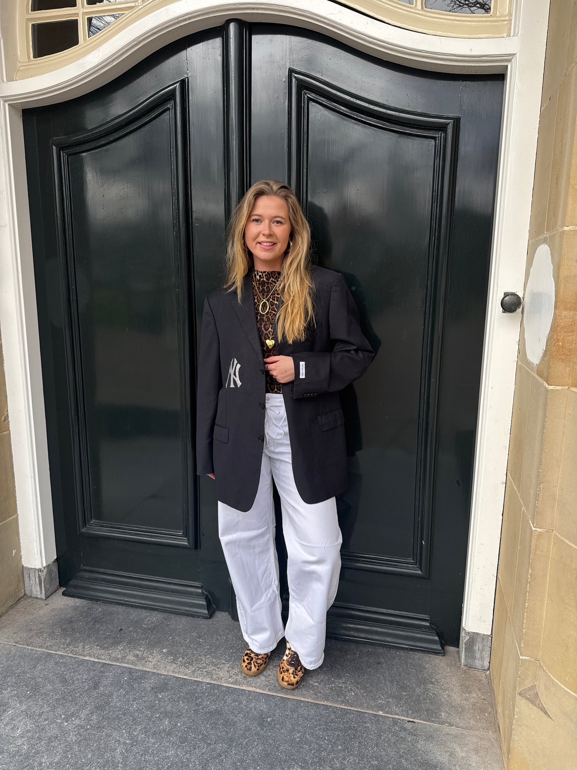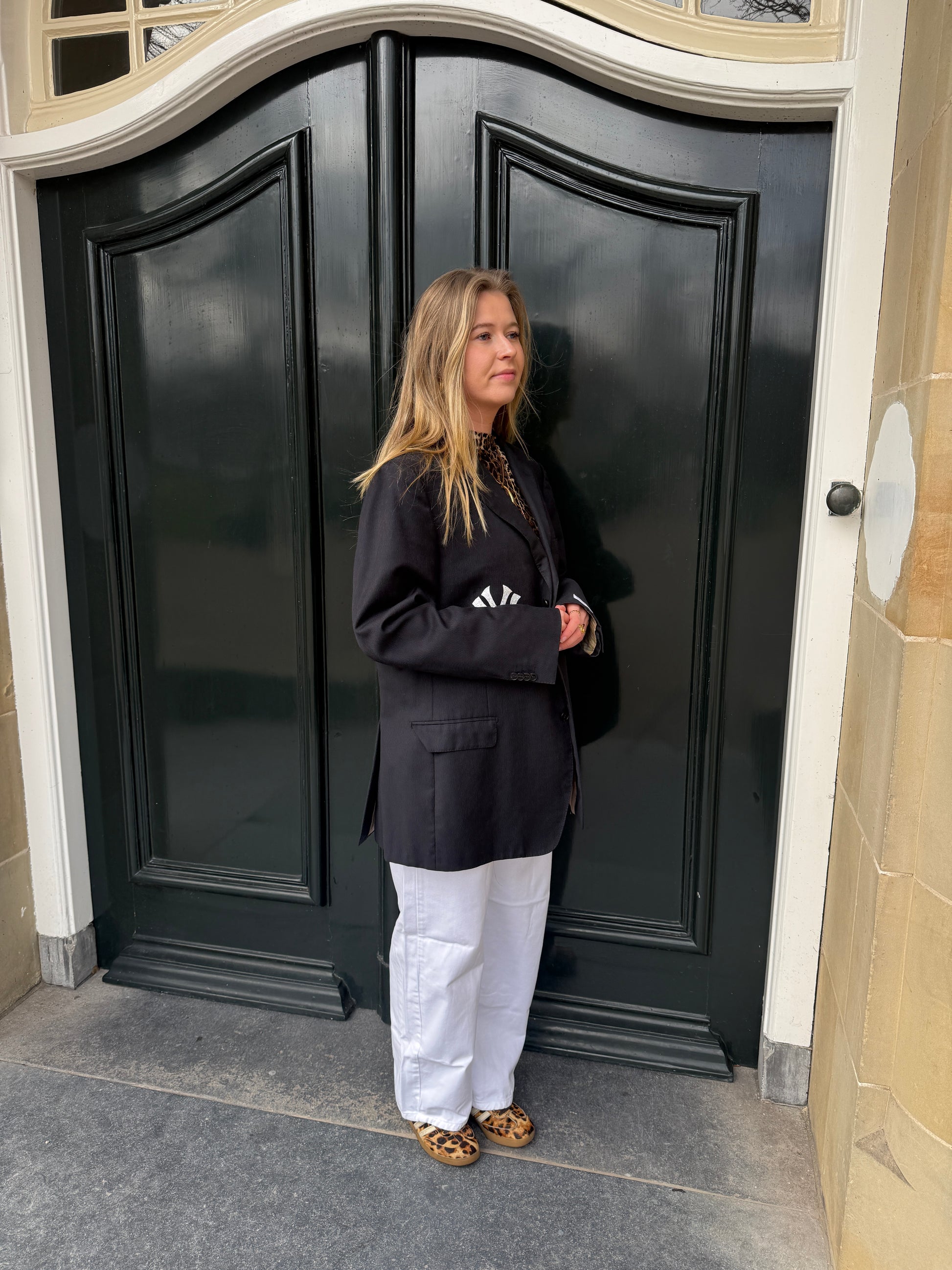 De blazers kunnen van maat XS t/m L. Heb je een maat L zal de blazer iets kleiner vallen dan het model en heb je een maat XS juist iets groter dan het model.